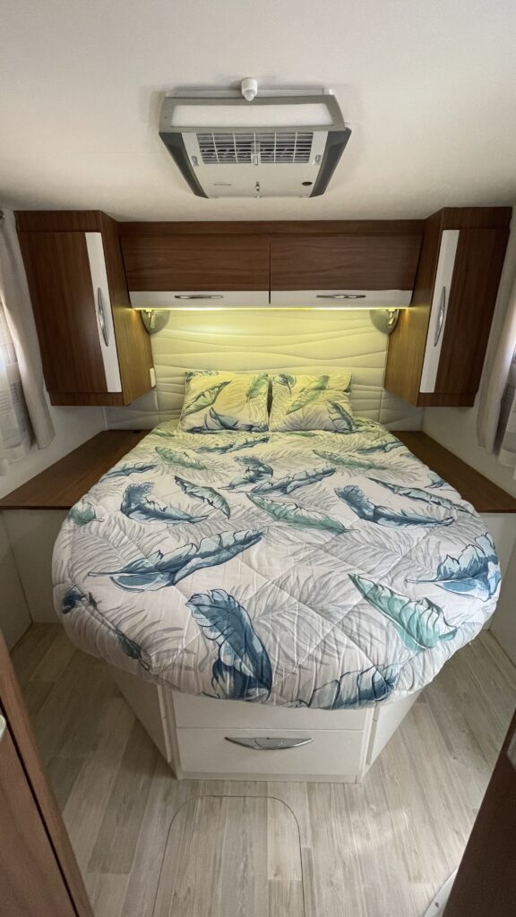 - Chambre : Lit Central (190 x 145 cm) sur vérins à gaz